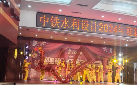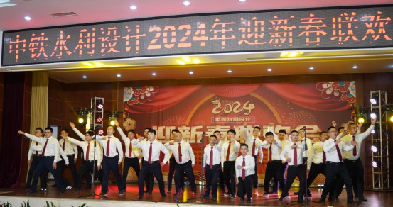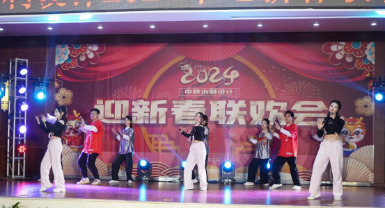 联欢会伊始,由移民环保院带来的舞龙《祥龙献瑞》热闹开场,寓意迎接2024年龙年到来。12支节目依次登场,淋漓尽致地展现了集团公司改革发展所取得的喜人成果,抒写了中铁水利设计人规划江河、设计未来的感人故事,充分展现了全体职工昂扬向上的精神面貌。