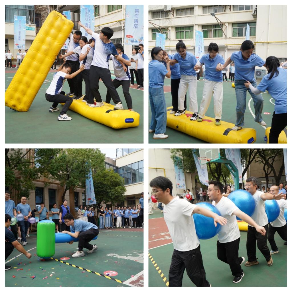 在当天上午举行的趣味类活动中,精心设计的“铁三项”项目融合了“一锤定音”、“同舟共济”和“夹球跑”三个环节,每支队伍紧密配合、争分夺秒,比赛过程妙趣横生,现场喝彩声与欢笑声此起彼伏。