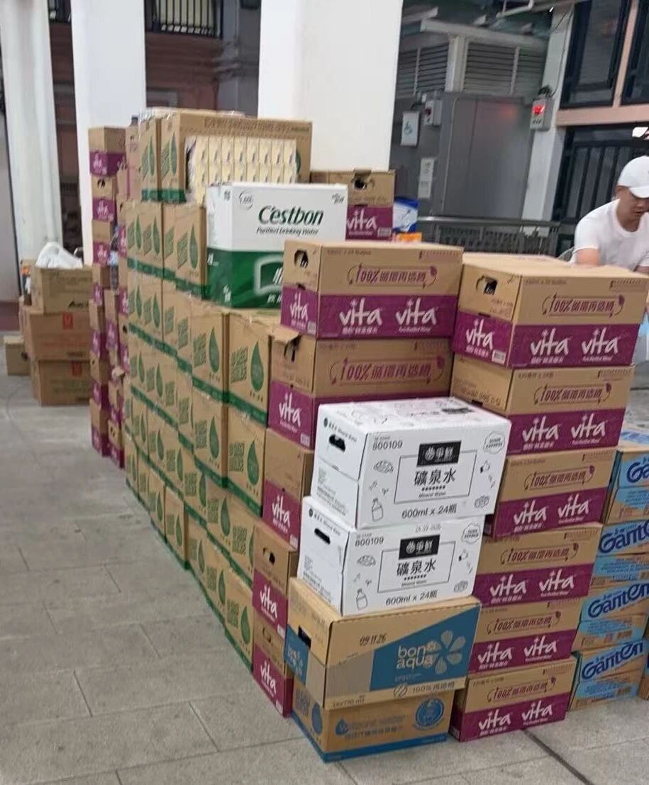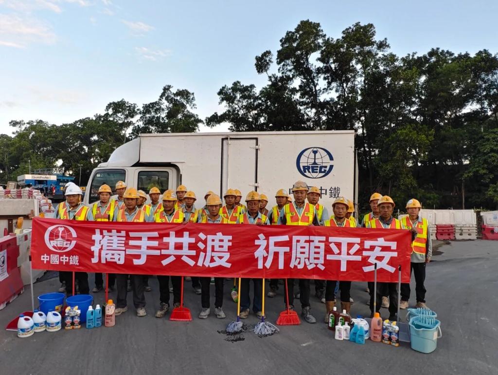 中铁国际香港元朗南项目经理部立即组建32人的义工支援队,携带专业工具,第一时间赶赴受灾居民临时安置点,协助对宿舍、卫生间等各类公共区域展开深度清洁与消毒作业,累计完成超过100余处公共区域的清理工作,同时向安置点捐赠了纯净水、方便面、消毒液等应急生活物资。