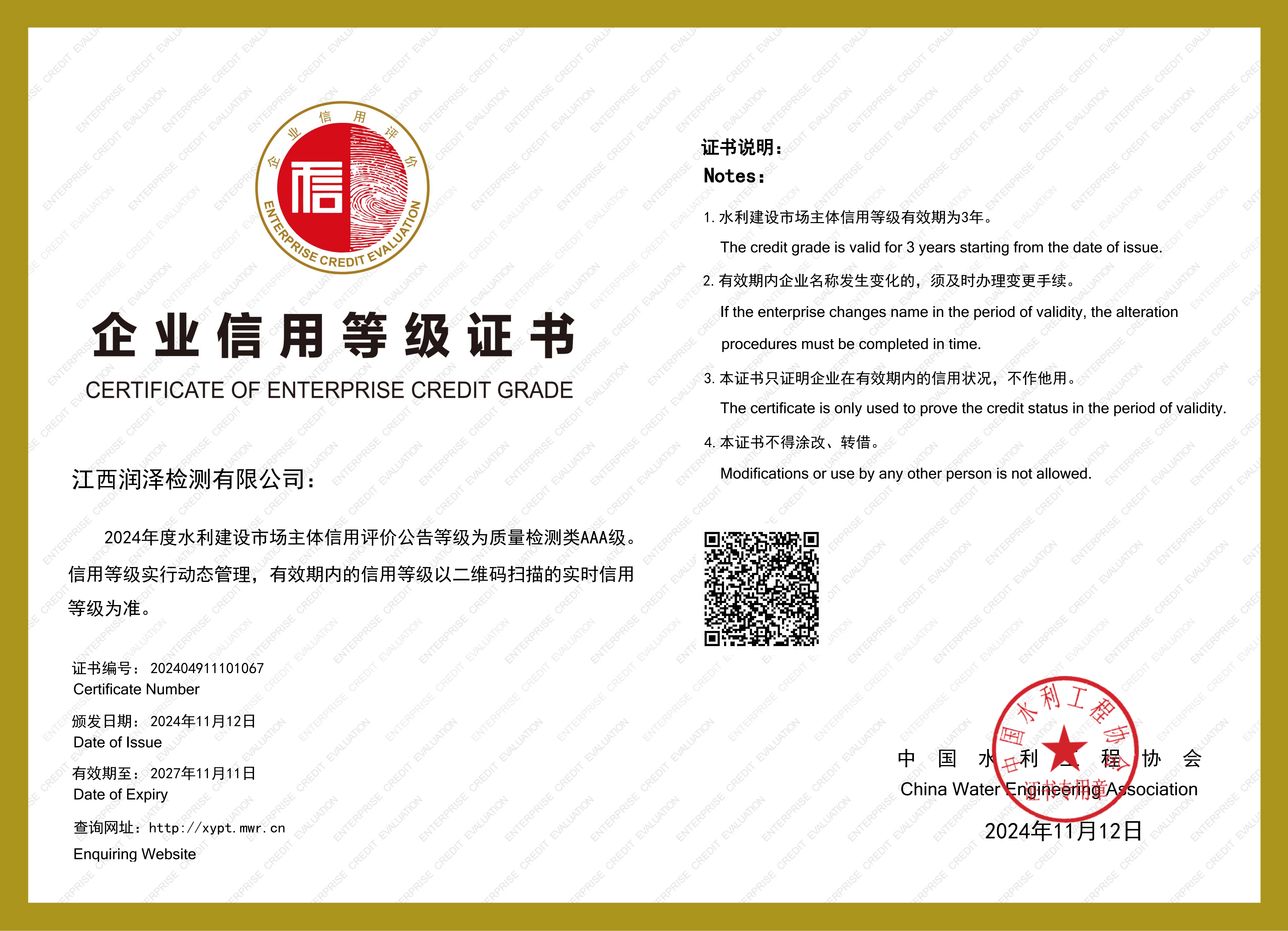 企业信用等级证书AAA